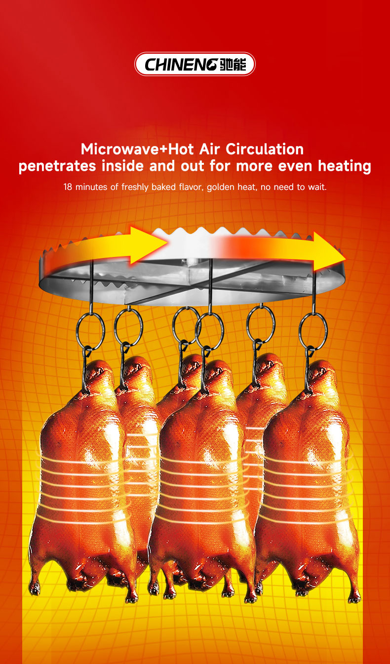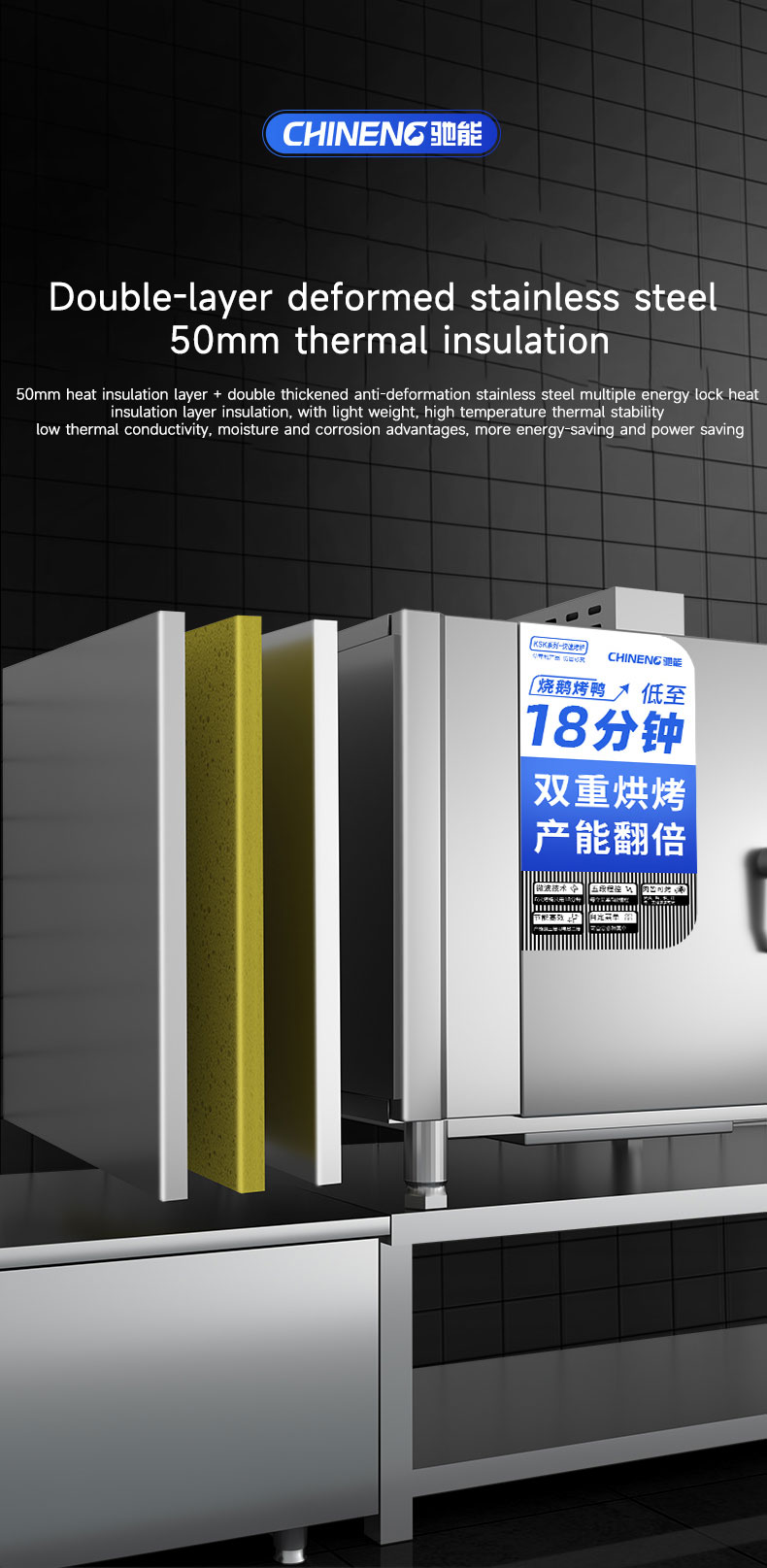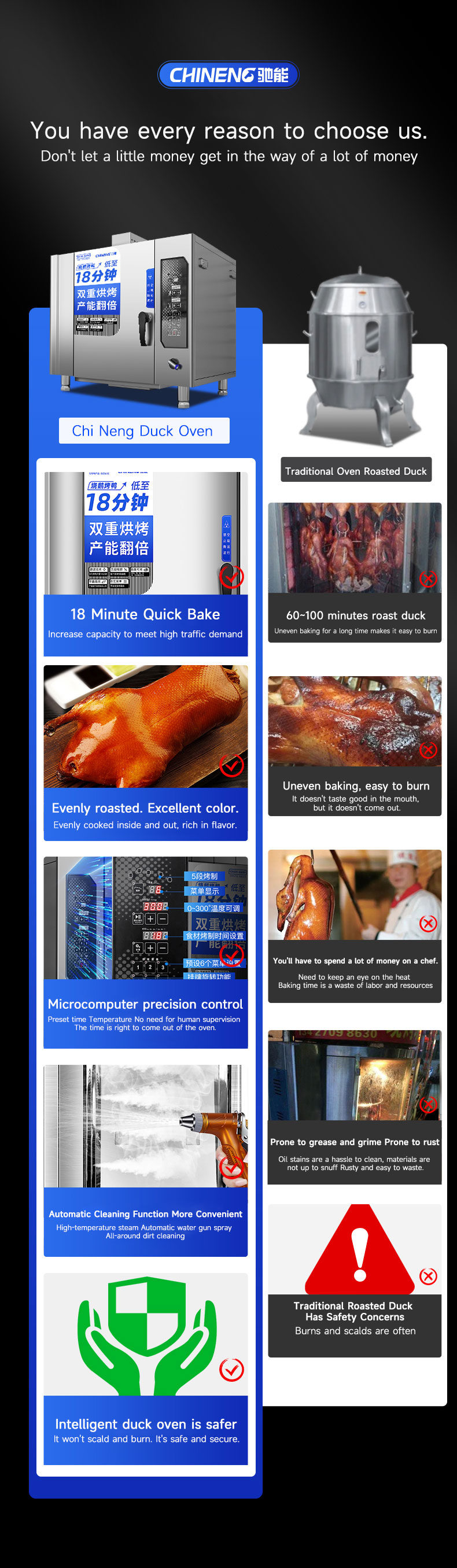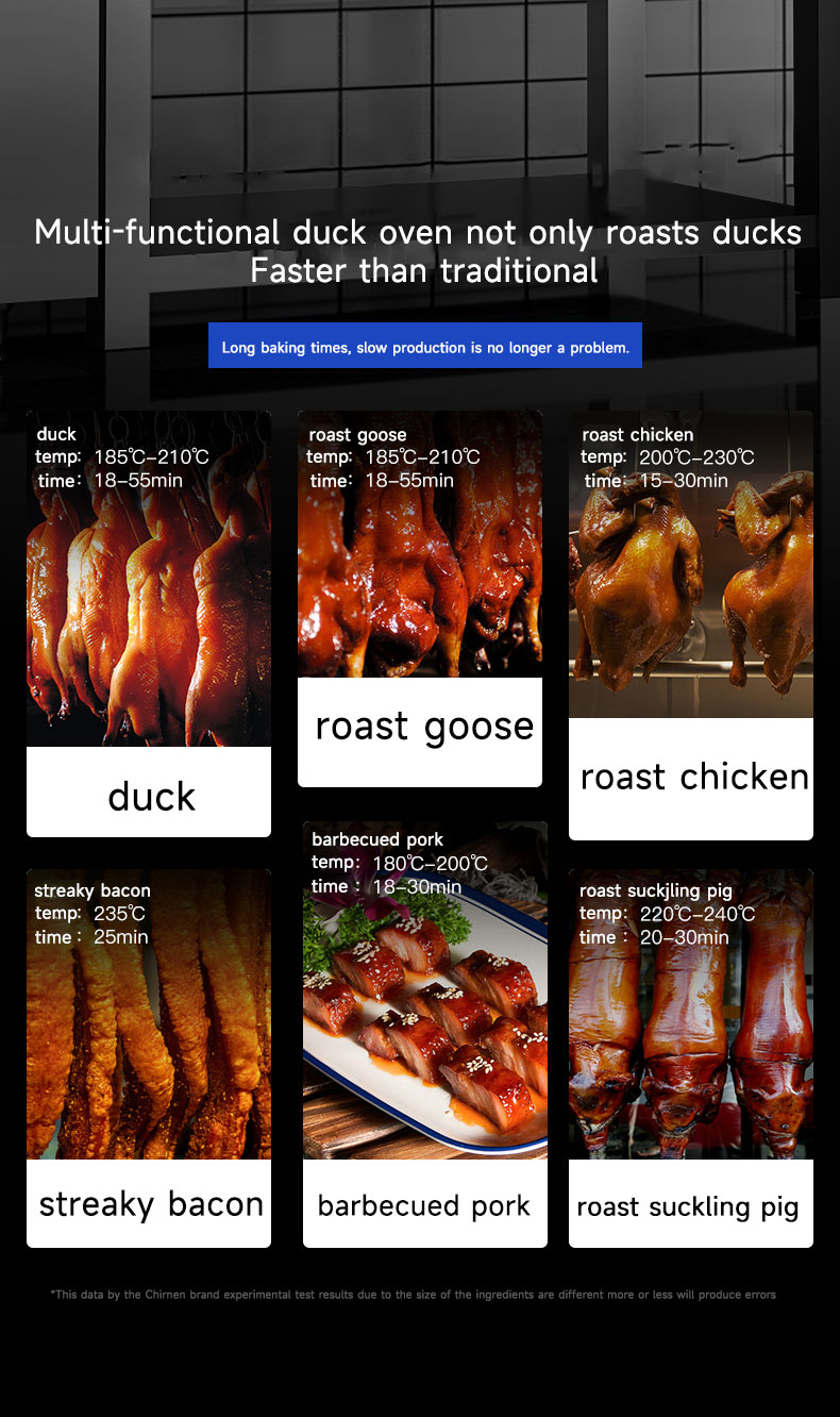 Cooking Capacity: 13~16 chickens of three pounds/10~12 ducks of five pounds/8~10 geese of seven pounds