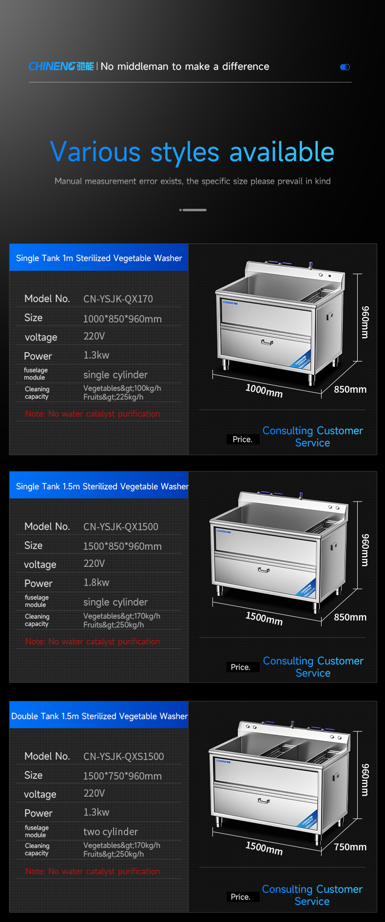 Cleaning Capability: Vegetables > 170kg/h, Fruits > 250kg/h