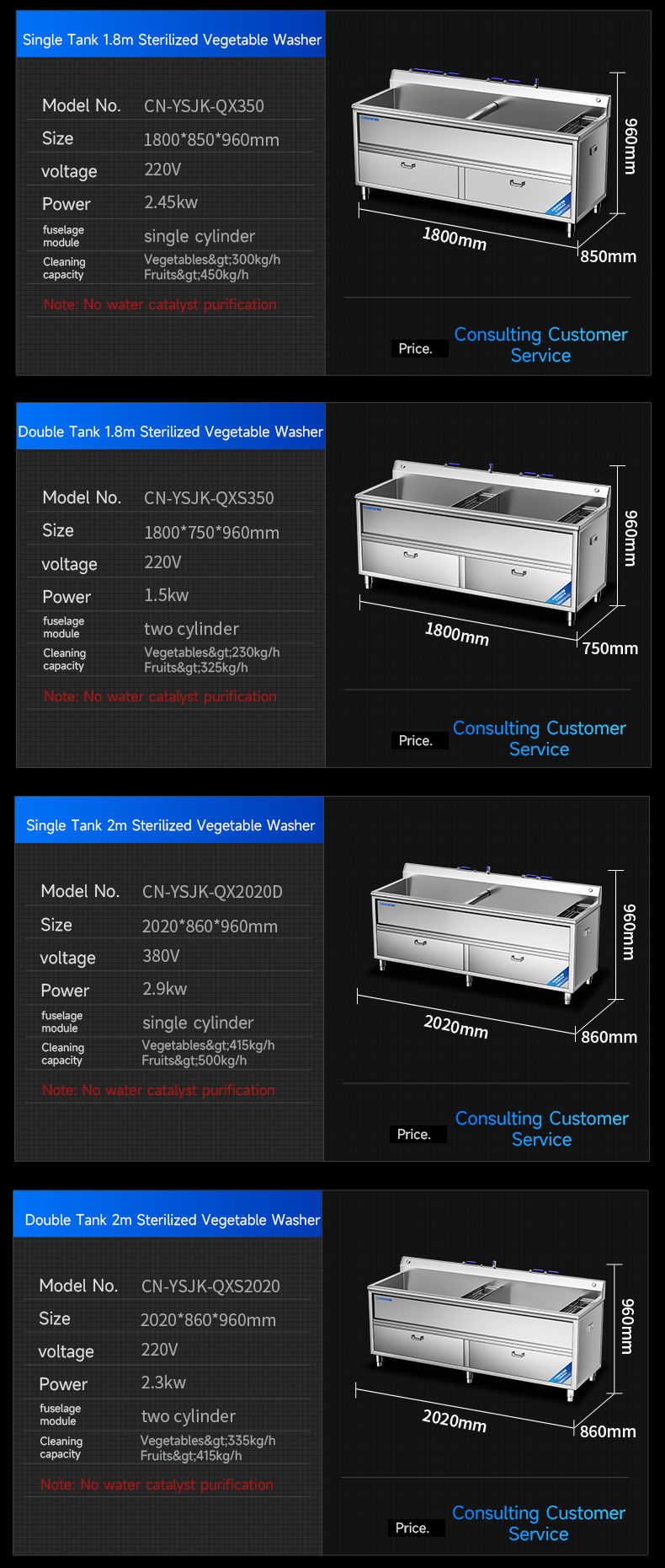Double Cylinder 1.8 Meter Disinfection Vegetable Washing Machine (Waterless Catalyst Purification)