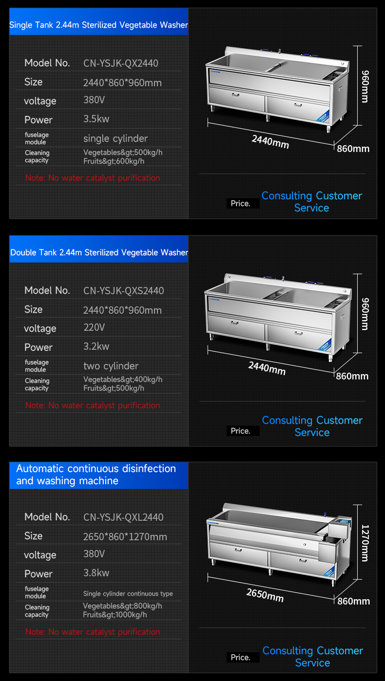 Double Cylinder 2.0 Meter Disinfection Vegetable Washing Machine (Waterless Catalyst Purification)