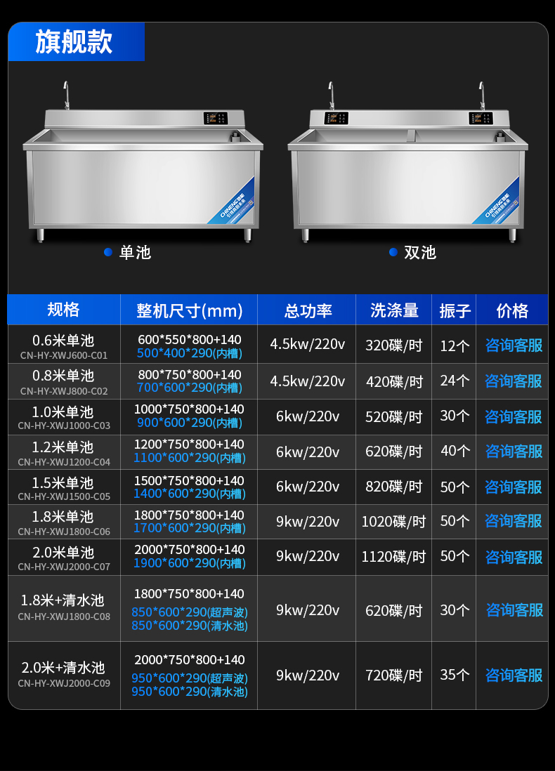整机尺寸:1800*700*950(超声波1060*470*300)(清水池575*470*300)