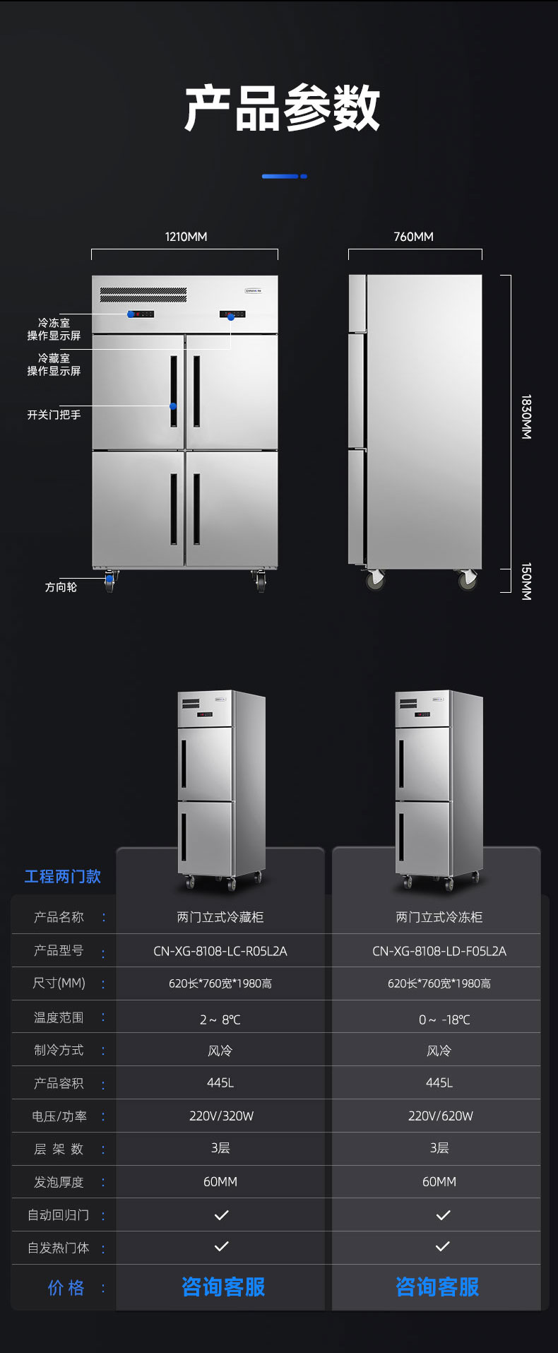 两门立式冷藏柜