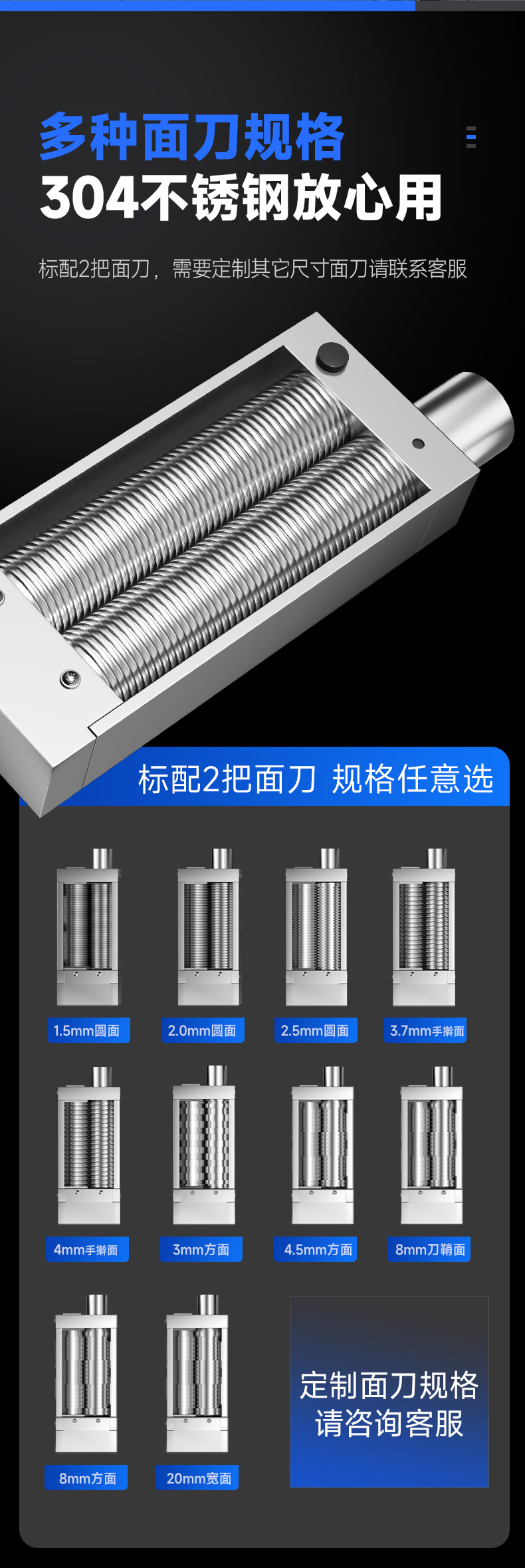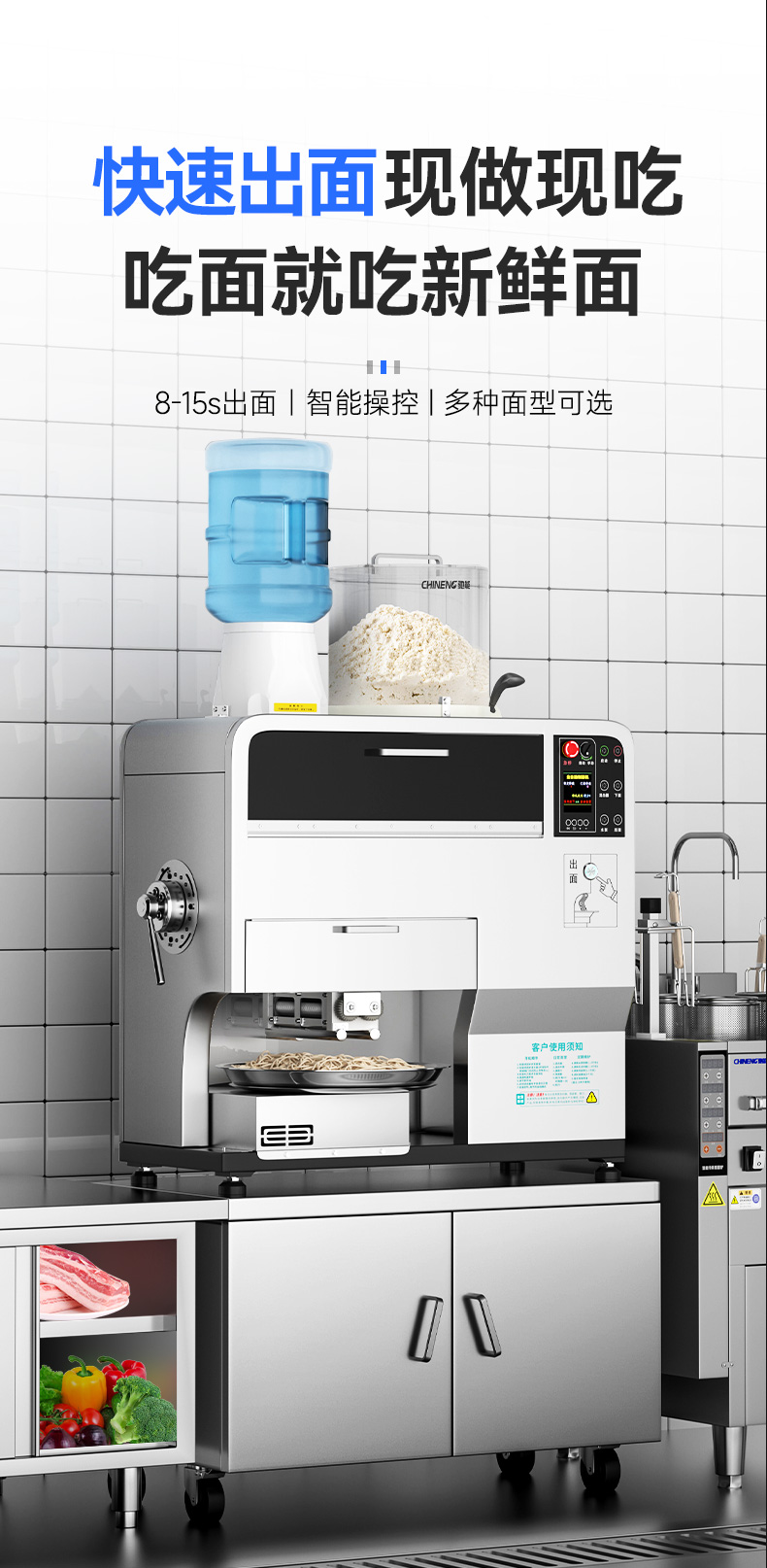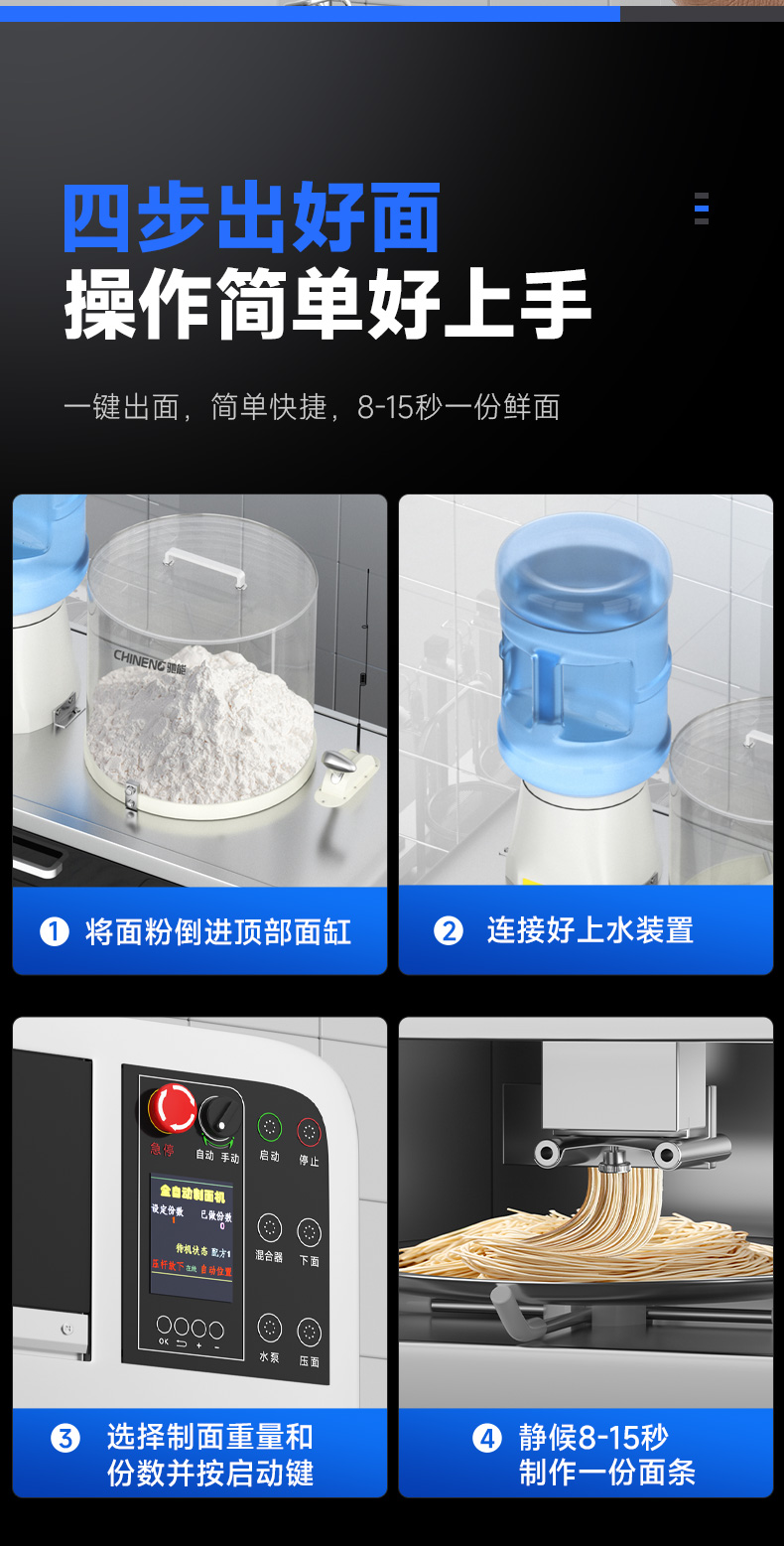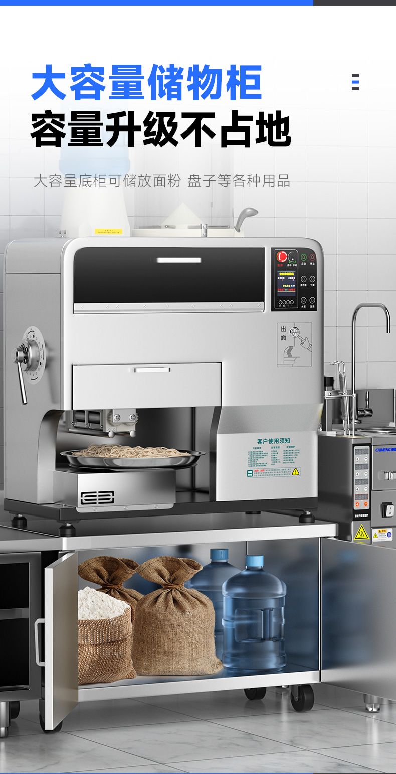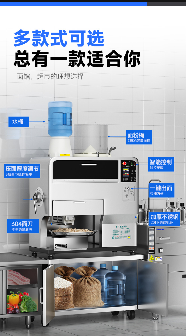配置:主机+底柜+面桶+2把面刀+水桶(含水桶底座)