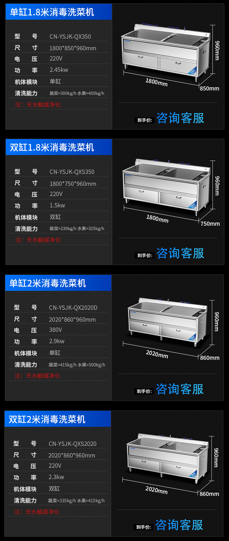 双缸2.0米消毒洗菜机(无水触媒净化)