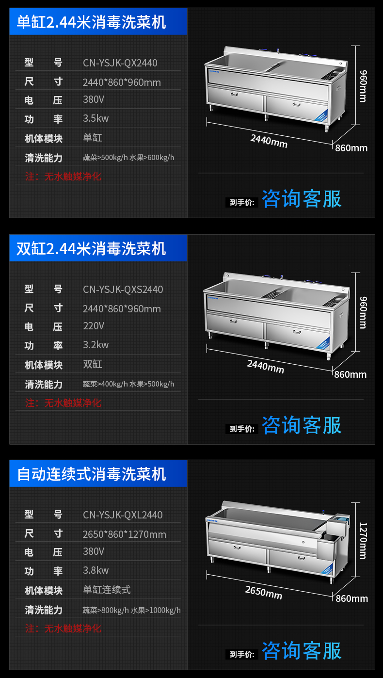 双缸2.44米消毒洗菜机(无水触媒净化)