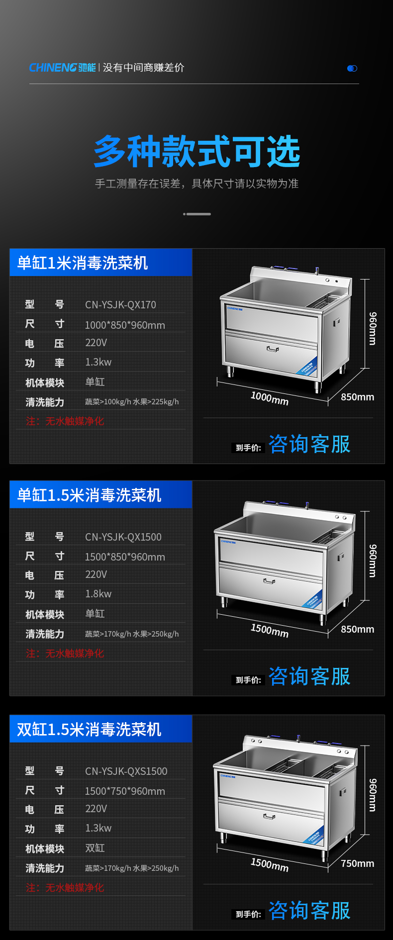 双缸1.5米消毒洗菜机(无水触媒净化)