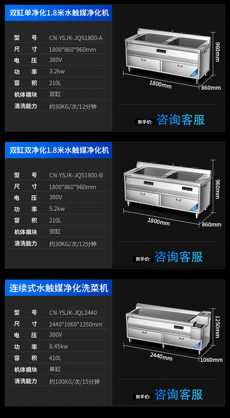 双缸1.8米消毒洗菜机(无水触媒净化)