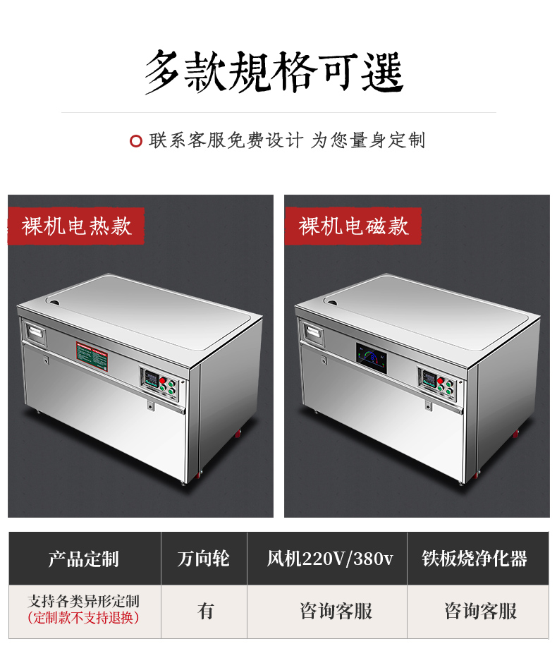 注:可加装配件,升级静点油烟净化器,大风量离心风机。